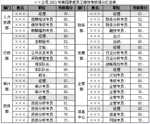 应该说考核者还是较为严格的执行了强制分布法,然而人力资源部对于每次考核结果总是觉得不对劲,公司领导也在每次考核分析会上表示对考核结果极为不满。下表是人力资源部提供给我们的一次考核结果。