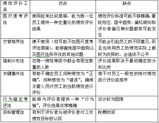 第二,选择正确的绩效评价工具。每一种评价工具,不论是图等级尺度评价法还是关键事件法,分别都有优点和不足。例如,等级排序法能避免居中趋势,但是所有员工的业绩确实都应该被评定为“高”的情况下,这种评价法会引起员工的不良感受。各种绩效评价工具的主要优缺点如表(一)所示: