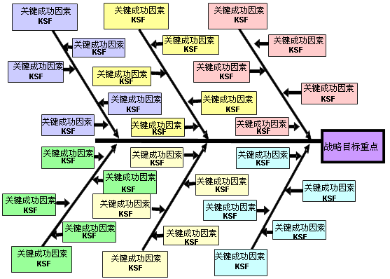 鱼刺图战略分解法就是先通过平衡计分卡按照四个维度来梳理和明确企业战略目标,作为进一步分解企业关键绩效指标(KPI)的基础。