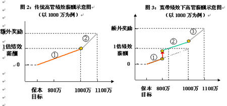 图2:传统高管绩效薪酬示意图 图3:宽带绩效下高管薪酬示意图