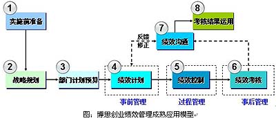 由此引出这样一个话题,何谓成功的绩效管理?评价一个企业应用绩效管理成功的标准,很大程度上取决于该企业实现绩效管理目的和初衷的程度。但这里要强调的是,“成功”并不意味着“成熟”。博思创业认为,一个成熟的绩效管理体系,包括八个步骤(如图1所示:博思创业绩效管理成熟应用模型)。