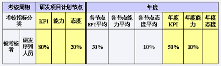 另外对研发人员的评价最忌讳的就是急功近利,因为研发人员需要的是一个宽松、稳定的环境,而不应增加太多的管制,如果采用常规的周期进行考核,有可能造成研发人员的逆反心理,这样不但分散了研发人员的精力,影响研发进度,还有可能使研发人员疲于应付考核,使得考核效果适得其反。因此对研发人员按照各个关键节点作为周期进行考核,既有利于让研发人员集中精力于研发工作中,又能公平地考核研发人员的工作成果。
