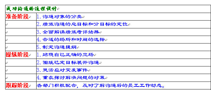 一个完备的绩效沟通全过程主要是由沟通前的准备阶段,沟通过程中的操纵阶段和沟通后的跟踪阶段三部分构成。而且这三部分是紧密相连,互为作用,共同构成了一个具有较强逻辑性的循环圈。
