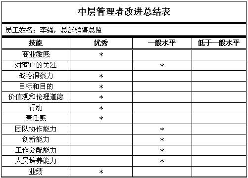选定了有潜力的中层管理者,那HR就应该对其进行评估,看他在哪些方面还做得不够,针对这些不足,HR将为其制定个性化的培养计划。“改进总结表”就是一个很好的评估工具。