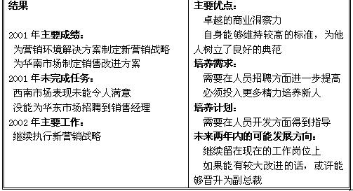 让我们以某公司的销售总监李强为例。根据领导层评估总结表上的结果,他被认为是一位高潜力人士。他在2001年的工作可谓硕果累累:他不仅为新的解决方案销售制定了新的市场战略,而且还为华南市场制定了营销改进方案。2002年,他的工作重点就是继续推行他所制定的新的市场战略。尽管如此,可他还是需要进行一些重大的改进。比如说,他必须学会如何通过指导来组建新的团队,而且还要帮助那些表现达不到预期水平的下属——尤其是那些在西南市场工作的员工进行改进。同时为了配合销售方案销售项目的开展,他还要招聘许多新的员工,并帮助这些员工尽快融入到整个组织当中。