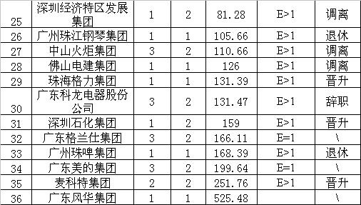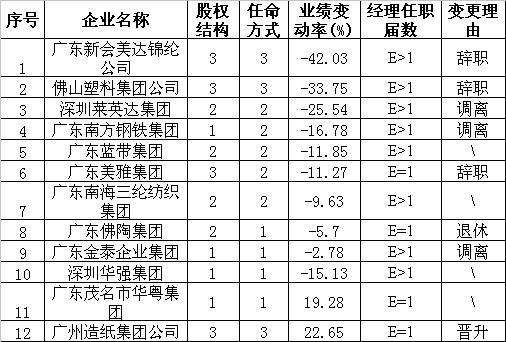 中山大学岭南学院的王君等在2001年初对列入广东省经委的83家重点大型集团进行了问卷调查,下面是一份广东省大型企业集团的经营业绩与经理任职变动的表格。在下表中国有独资企业有17家,国有控股公司有9家,乡镇政府控股的有6家,其余4家为外资控股企业。根据业绩变动情况分类,销售收入增长率超过100%的为26~36号10家企业;从正增长到100%的有10~25号16家企业;增长率为负的为1~9号9家企业。由上表可以看出,经理任期普遍较短。在这36家企业中只有11家在5年内没有更换经理,而其他都更换了1次以上。这也与中国企业家调查系统的调查结果相符。即在企业中连任6年以上经理的比例,外资企业最高,为83.3%;私有企业次之,为82.1%;国有企业最低,只有56.6%。这一调查说明了在我国的许多企业内部是激励不足的问题。对于职业经理人来说,由于退出成本很低很容易产生一次性博弈的行为。在委托人对企业管理监管不足的情况下,不少人抱着“捞一把就走”的心理在企业管理中做出短期行为。