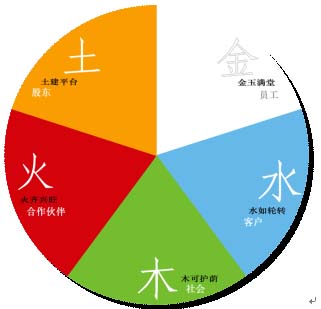 对于广大的中小企业而言,仅仅通过调整心态还难以实现其CSR的目标。很多从资本原始积累逐渐走向正规化的中小企业,对CSR缺乏系统的认识,他们甚至还不知与其CSR相关的利益关联方都有哪些。在与中小型企业的深度沟通中,汇才Tophuman将企业社会责任的理念和中国传统的“五行”哲学理念的精华相结合,开发了一套CSR评价体系,从而找到了帮助中国中小企业建立CSR体系的捷径。