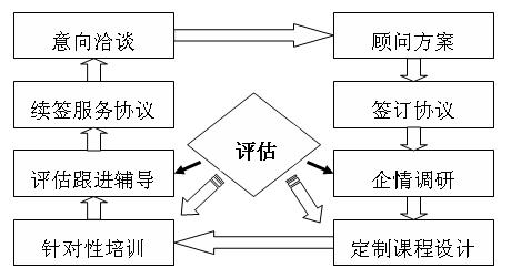 顾问式培训是“以协议或合同的方式固化企业的培训需要和期待解决的问题,然后由培训师展开调查分析,在此基础上实施相关培训,服务期限或培训项目评估完成后解除协议或合同"。这种顾问式培训模式,在实践中不断地改进,趋向真正的客户导向,培训直接针对企业的实际问题。