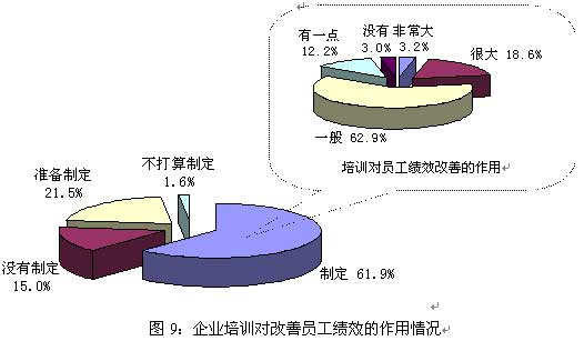 图9的数据结果也许会被认为是企业对培训投入和关注不甚理想的强有力的原因,因为,大部分企业认为培训对改善员工绩效作用一般。如果我们换个角度看:
