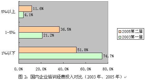 ② 培训经费占销售收入1‰-5‰的企业比例都有大幅度增加;