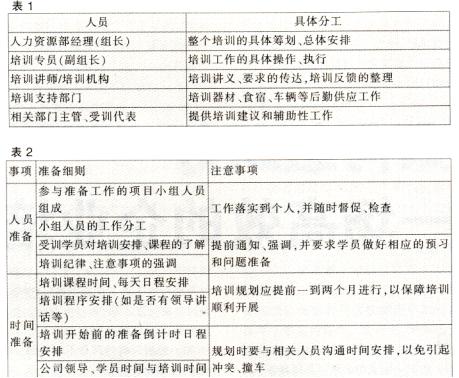 在准备阶段成立项目小组,主要是协调培训中的各项工作安排,确保培训如期圆满地进行,其分工通常如表1所示。