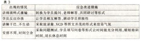 作为培训组织者,一定要有课讲砸了的心理准备和应急措施。一旦出现讲课效果与期望出人很大,学员反映很差时,应急补救措施就派上用场了。常见的培训应急措施如表3。