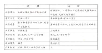 培训是一种学习,它与学校的教授虽同属学习,但是有很大的区别,我们可以将二者的区别归纳于下表: