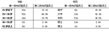 表 1 知识型员工的年龄和学历结构