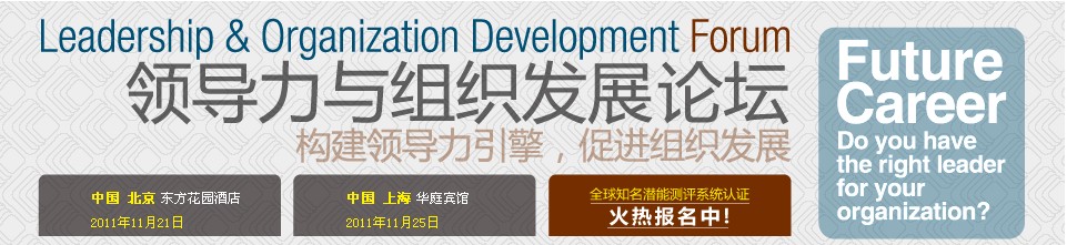 为了与大家共同探讨及分享领导力发展领域的研究成果及最佳实践,Future Career将于2011年11月于北京与上海两地举行“2011年富柯瑞领导力论坛”(构建领导力引擎,促进组织发展)。在本次活动中,Future Career将邀请国际认知研究领域专家、领导力发展领域资深顾问及人力资源行业的精英人士,共同讨论如何有效的对管理者进行识别(如领导潜能)、从而设计有针对性的培养和发展策略,以促进领导力提升和企业绩效的增长。