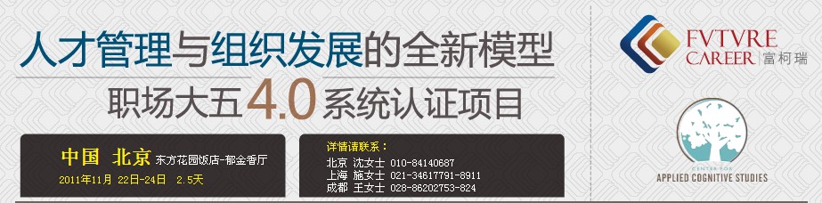 “五大因素模型认证项目是我所参加的培训中最专业的一个项目!我本身也是一名培训师。谢谢你们为我提供了如此难忘又颇有收获的三天。”