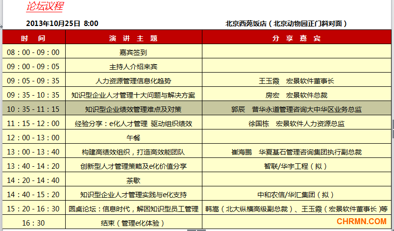 2013年,让我们相聚在“信息时代知识型企业人才管理论坛”,携手国内知名企业领导人、人才管理专家及信息化专家,探寻中国人才管理秘籍。