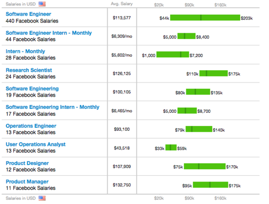 Facebook实习生基本年薪远高于美国平均水平