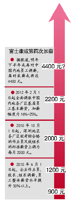 富士康拟将员工底薪翻倍 2200元跳涨至4400元