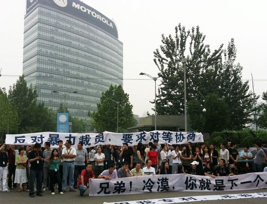 中国成摩托罗拉裁员重灾区 被裁员工集体抗议