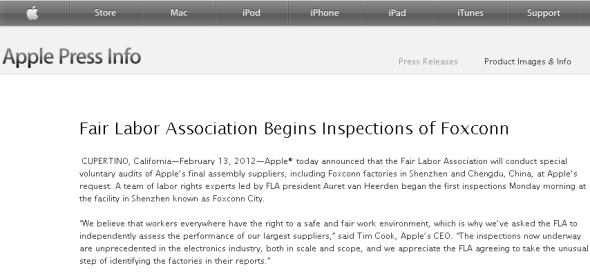 苹果宣布第三方劳工协会调查富士康