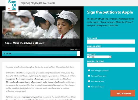 美国25万人签名请愿 要求苹果整治在华血汗工厂