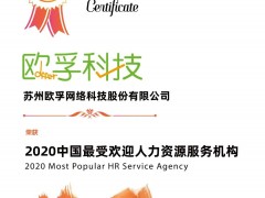 欧孚科技荣获2020中国最受欢迎人力资源服务机构