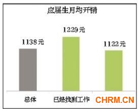 在针对2014年应届生生活情况调查中,应届生的整体月均花销为1138元,其中已经找到工作的应届生平均每月的开销是1229元,尚未找到工 作的应届生月均花费为1122元,差距并不大。究其原因是因为绝大多数的学生目前仍然住在学校,只有少数已入职且工作地点较远的学生可能自己租房,所以多 数人没有住宿的压力,开销还是处于一个相对较低的状态。