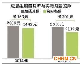 90后更为现实的表现是,其期望月薪与实际月薪惊人的相似,2014年期望的平均起薪为2606元,较2013年略有提升。与实际的差距仅为163元,较去年的391元的差距又“精准”了不少。