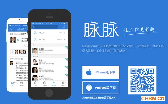 脉脉于2013年10月份上线,最初定位是基于二度人脉的招聘工具,其后在多次迭代中加入并且逐步强化了社交功能。目前,脉脉给自己的定位是“工作版微信”,具备了即时通讯、状态分享、匿名八卦等几个功能。