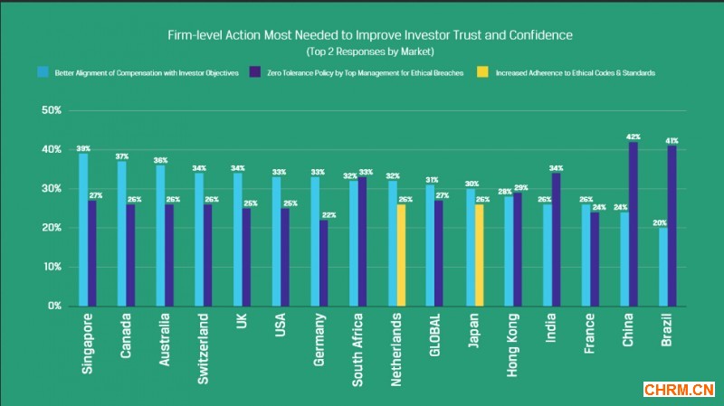 中国CFA协会成员持续关注金融市场诚信等问题,他们认为金融机构内部职业道德文化不足是导致投资者对金融业缺乏信任的主要原因,他们视市场欺诈如内幕交 易及财务报告失实为当地市场最严重的道德问题,认为有关方面需要加强执行法规。他们呼吁改进金融监管、监督全球系统性风险并在金融机构内建立道德文化,以 改善市场诚信度和增强投资者的信任。