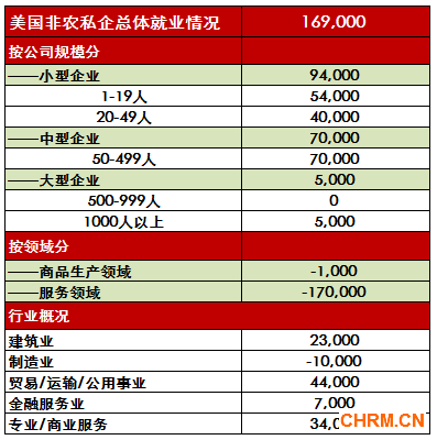 “ADP新增就业人数已经连续两个月处于20万关口下方。”ADP总裁兼首席执行官CarlosA.Rodriguez表示,企业规模在 500或以上雇员的大型企业新增就业表现最差。