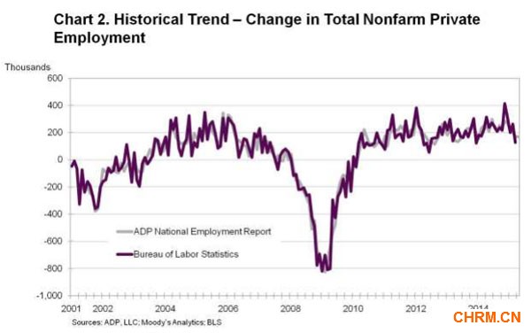 《ADP全美就业报告》由国际领先的人力资本管理解决方案供应商ADP与Moody'sAnalytics共同制作。ADP就业报告采集自美国私营领域中 416,000家企业,涵盖近2400万美国员工。《ADP小型企业报告》(SM)是针对美国1到49名员工的非农业小型私人企业推出的月度就业报告,是 《ADP全美就业报告》的子报告。两份报告的数据均采集自付薪时段,都包括每个月12号所在的一周,并采用了和美国劳工统计局所使用的统计学方法以精确计 算当月的就业情况。基于此种处理,ADP就业报告的样本经过修正后能精确反映美国的就业情况;因此《ADP全美就业报告》中得出的就业变化并不代表所有 ADP美国客户群的就业变化情况。