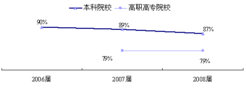 黑龙江省2008届本科、高职高专毕业生对学校的总体满意度分别为79%、68%