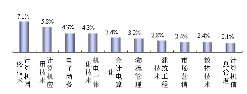 河南省2008届高职高专毕业生毕业半年后失业人数最多的前10位专业