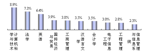 河南省2008届本科毕业生毕业半年后失业人数最多的前10位专业