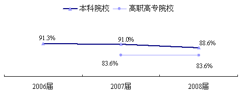 江西省2006、2007和2008届大学毕业生就业率的三年趋势图