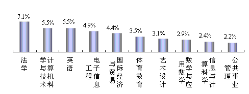 江西省2008届本科毕业生毕业半年后失业人数最多的前10位专业