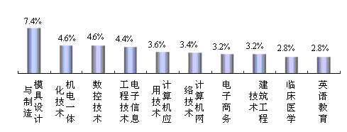 江西省2008届高职高专毕业生毕业半年后失业人数最多的前10位专业