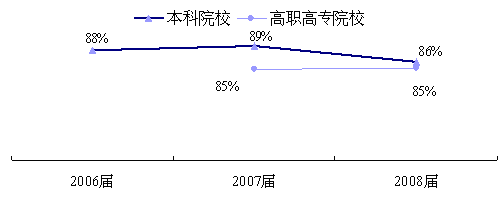 2006、2007和2008届大学毕业生就业率的三年趋势图