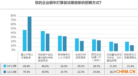 通 过调查研究,北森也洞察了人才管理的最新趋势:内部人才供给压力带来的挑战,促使HR开始由外而内的思考;企业越来越重视职业发展,人才吸引和保留策略更 多元化;人才流失率已成为企业评估人才管理效能最重要的标准;人才评估技术使用的深度和广度将不断加强;企业对“建立外部人才储备库”的偏爱回归理性,招 聘系统更受青睐;建立一体化人才管理体系已成为卓越企业的首要任务,一般的企业仍在绩效管理上补课;卓越的企业更愿意加大人才管理的投入,拉大一般企业的 追赶差距。