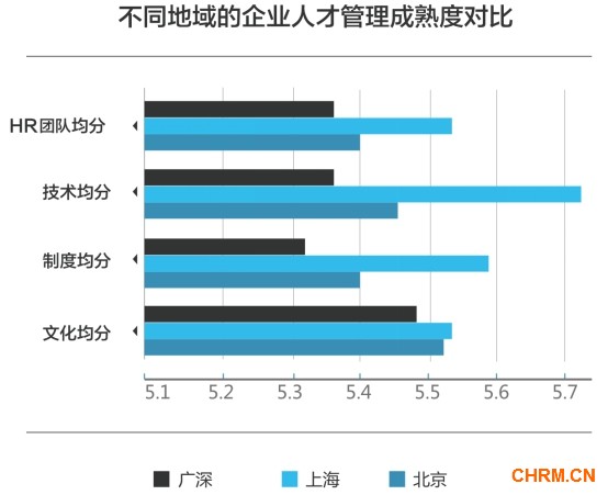 1000人以下的中小型企业在人才管理制度和技术上的差距明显;民营企业人才管理成熟度难以支撑其发展速度;快消行业的成熟度水平最高,人才管理文化建设亟需被重视;长三角地区的人才管理成熟度领跑全国,珠三角人才管理成熟度的潜力最大。