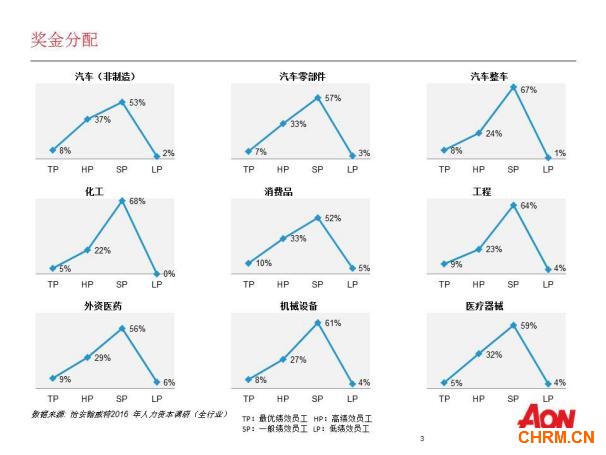 把绩效与薪酬挂钩一直是企业领导和人力资源数十年来的口头禅。然而,真正做到按绩效付薪、把绩效与薪酬高度关联起来的企业并没有预期的那么多。怡安翰威特人力资本调研显示,尽管大多行业依然会按照员工绩效进行奖酬分配。例如,消费品行业平均薪酬涨幅为6.7%,而最优绩效的员工平均涨薪13.9%,而较差绩效的员工平均涨薪仅为4.4%。同样,尽管汽车行业平均薪酬涨幅低于全国平均,但最优绩效的员工平均涨薪可达13%,而绩效较差的员工平均涨薪仅4%。然而,不同行业中不同绩效的员工分配各有差异。其中,消费品行业和外资医药行业同怡安翰威特模拟出的标准化绩效人员分布曲线最为吻合,呈现了较强的绩效导向文化。相比之下,化工行业除了少数最优绩效和高绩效员工外,大部分集中在一般绩效员工的群体,凸显出该行业一如既往的温和平稳的绩效管理理念。对多数行业亦或是企业而言,真正把绩效和薪酬有效关联起来、建立绩效驱动的文化还待时日。