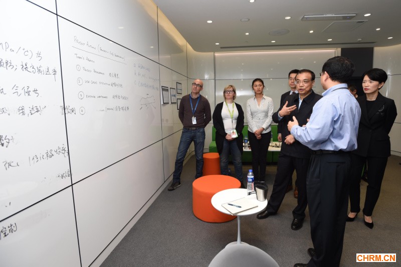李克强21日考察上海自贸区内的GE中国科技园,这里汇聚了5000多名中外员工。总理与不同国籍的员工交谈。他说,中国有1.7亿受过高等教育和专业技能培训的人才,世界总量第一的