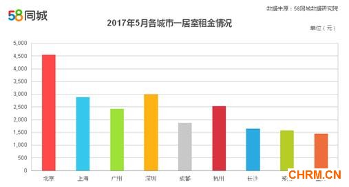 除了城市环境和发展潜力,相对低廉的房价和租金可能是成都超越三个一线城市,成为毕业生主要流向城市的重要原因。58同城数据研究院发布的《2017年高校毕业生租房报告》对2017年5月的一居室租金进行了对比,显示北京、上海、广州、深圳的租金均在2400元以上,而成都则是以1887元在租金层面展现出了绝对的优势。