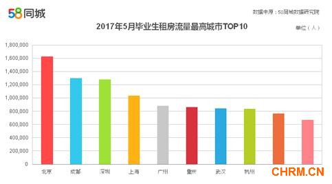 近几年,“逃离北上广深”不时成为热门话题,引发社会的大范围讨论,但数据显示,一线城市仍然当仁不让的是毕业生流入的主要城市方向。据58同城数据研究院发布的《2017年高校毕业生租房报告》显示,2017年5月,毕业生租房流量最高的城市中,北京依然荣登榜首,但值得注意的是,排在第二位的城市不是上海、广州、深圳,而是新一线城市成都。