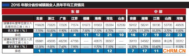 不过,从已公布平均工资数据的省份排名看,东、西部几乎是平分秋色。