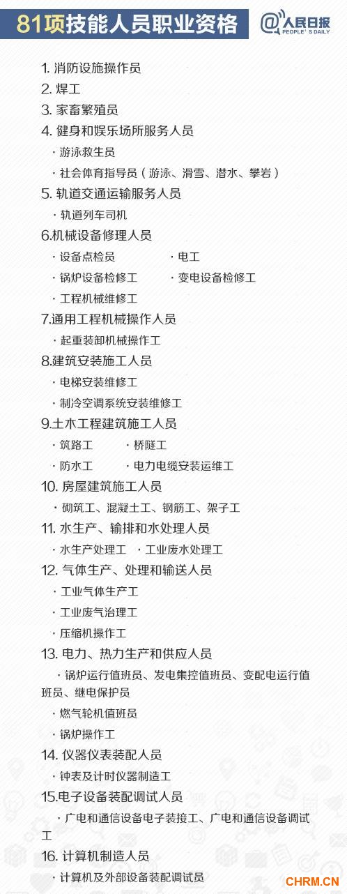其中,专业技术人员职业资格59项,含准入类36项,水平评价类23项;技能人员职业资格81项,含准入类5项,水平评价类76项。