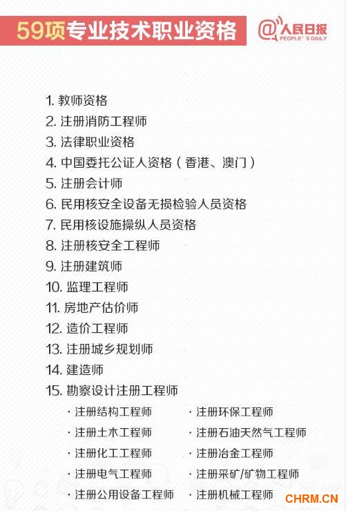 近日,经国务院同意,人社部公布140项国家职业资格目录。其中包括专业技术人员职业资格59项,技能人员职业资格81项。目录之 外一律不得许可和认定职业资格。