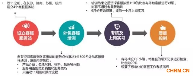 以上这个案例说明,森马通过人力资源外包服务达成了其双11业务的目标。外包的服务团队人数是森马自有团队人数的21倍有余,这么大量的外包客服管理不仅考验外包服务商的招聘能力,更考验的是如何与企业需求匹配,以完成业务交付为目的。